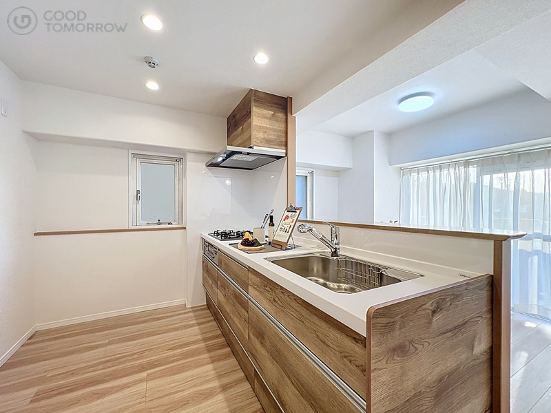 室内は、対面キッチンや浴室乾燥機など最新設備を備えた3LDK。